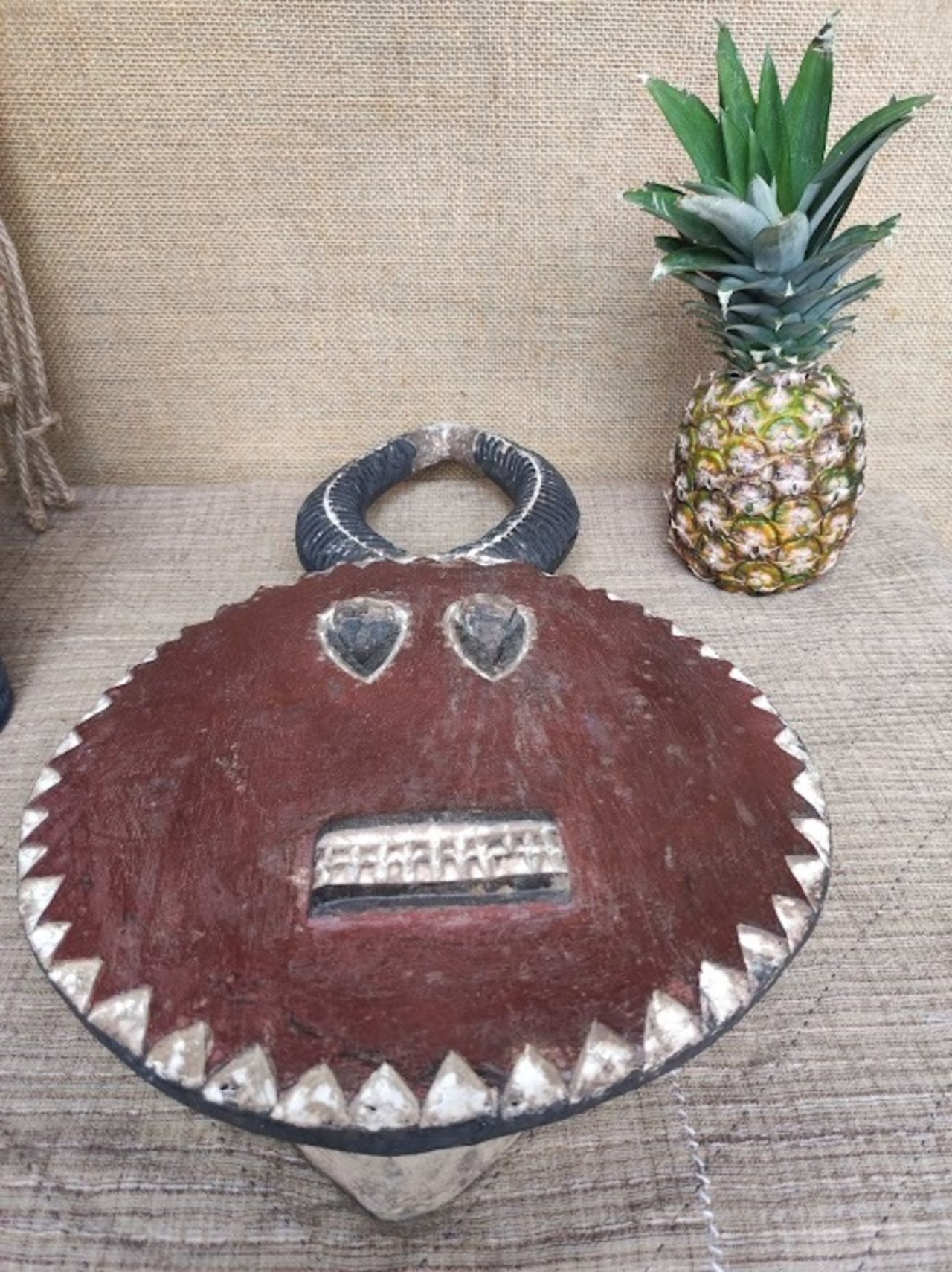 頭の角はバッファロー等の角で、顔は太陽を表していると言われています。