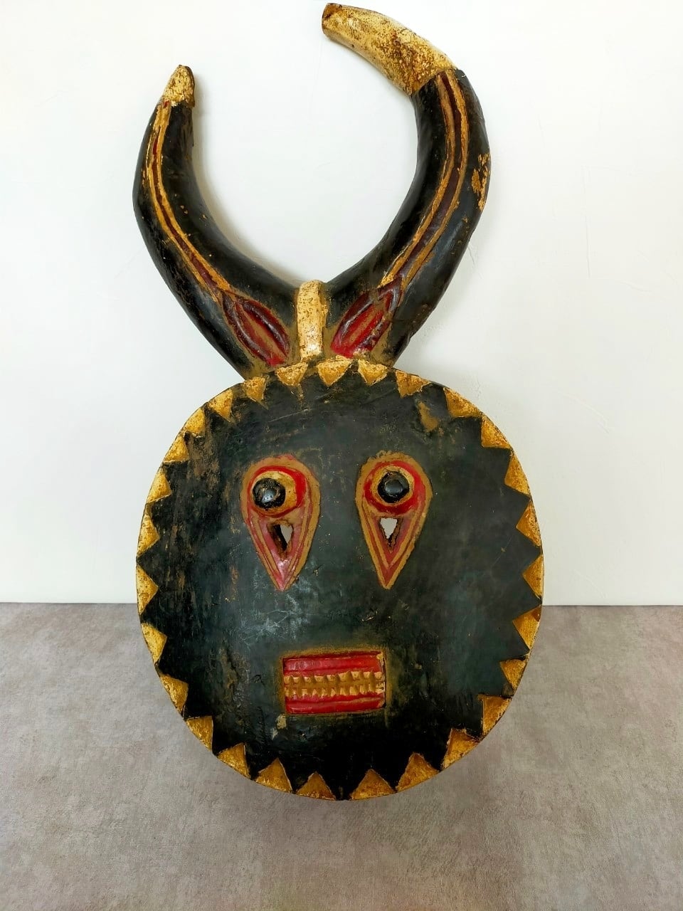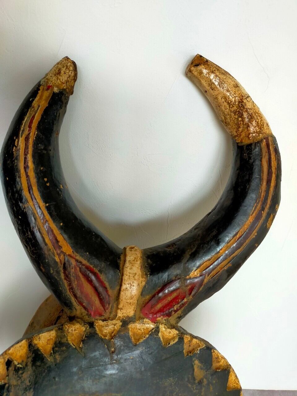 頭の角はバッファロー等の角で、顔は太陽を表していると言われています。