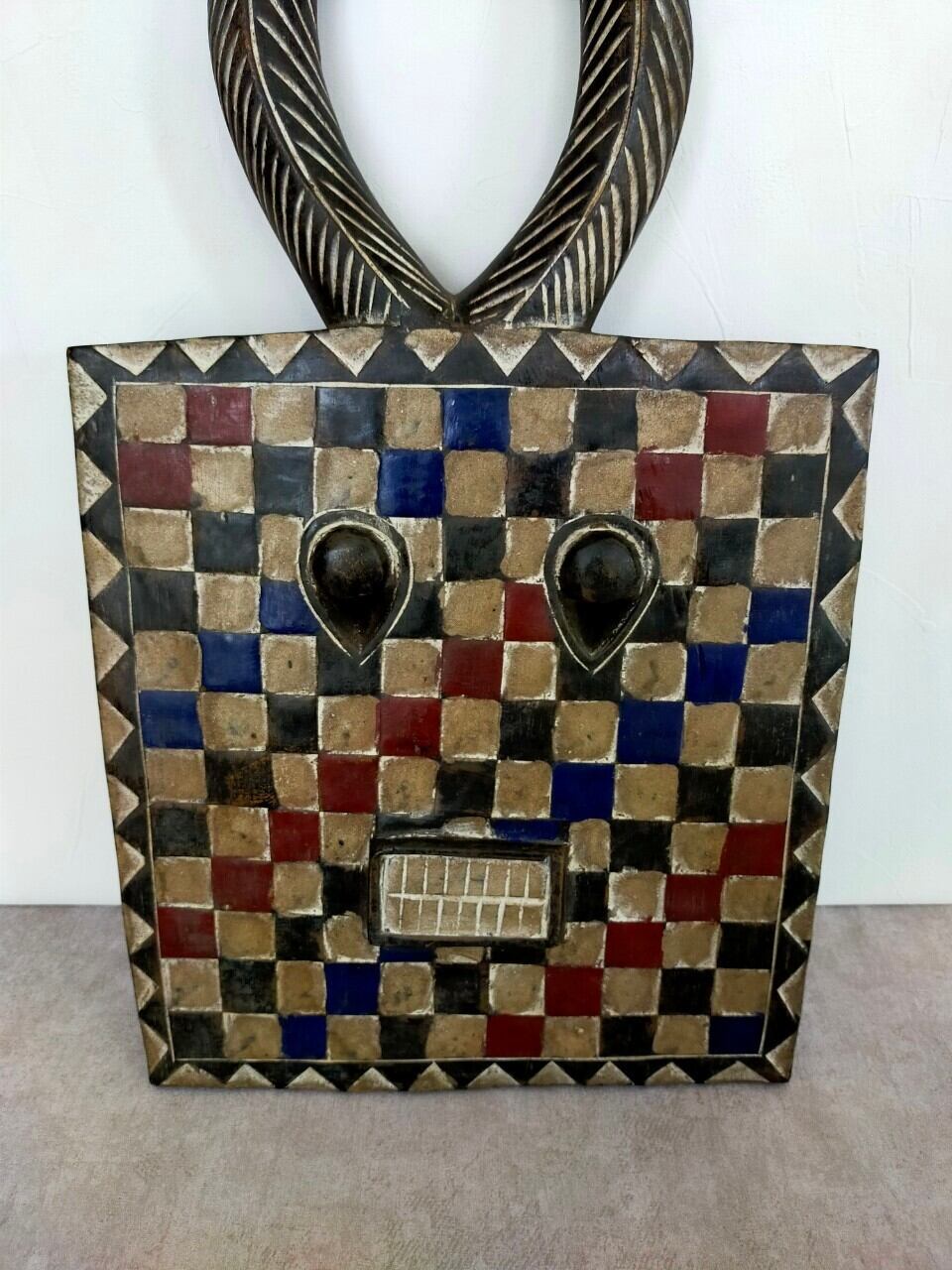 頭の角はバッファロー等の角で、顔は太陽を表していると言われています。