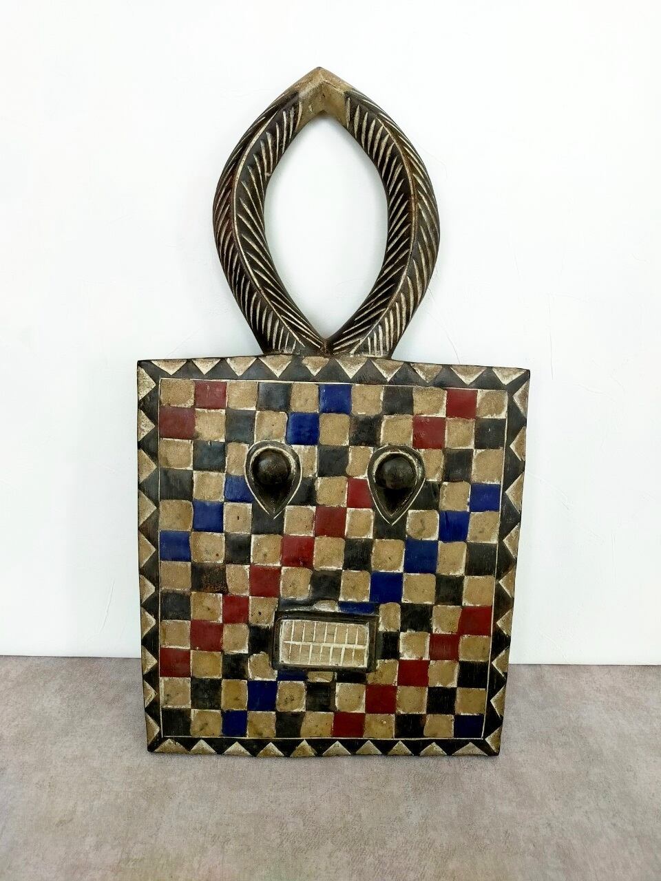厳選ポイント:お洒落な4色の市松模様に、四角い形のプレプレさんです。王道デザインとは違い、個性的でお洒落な仮面です。