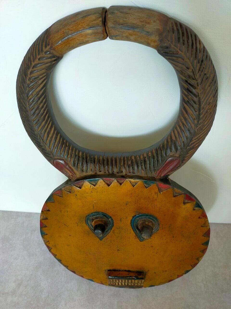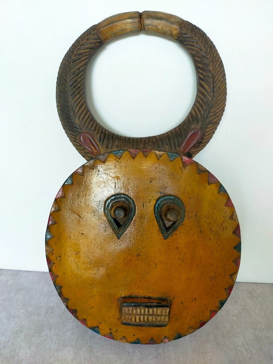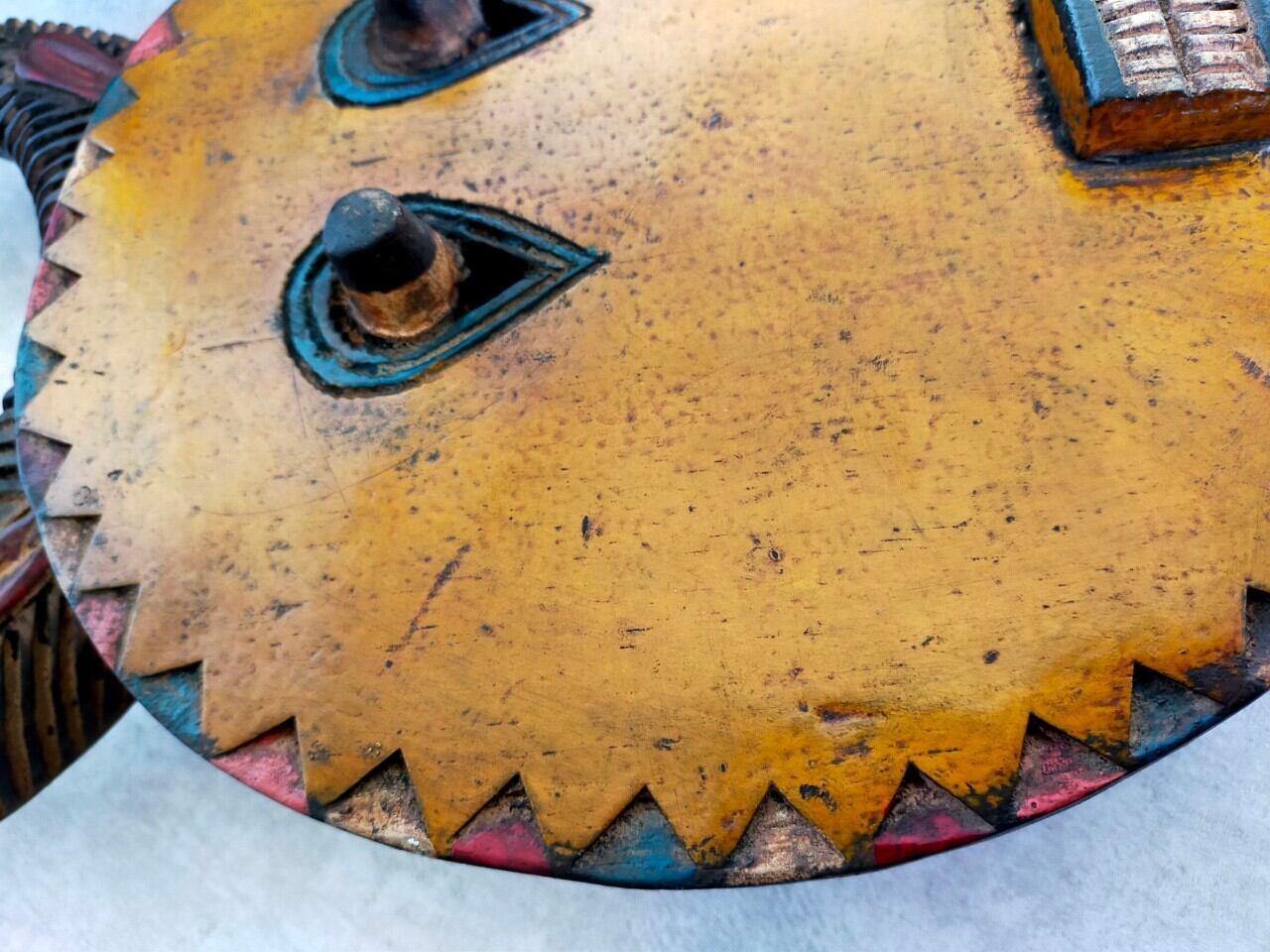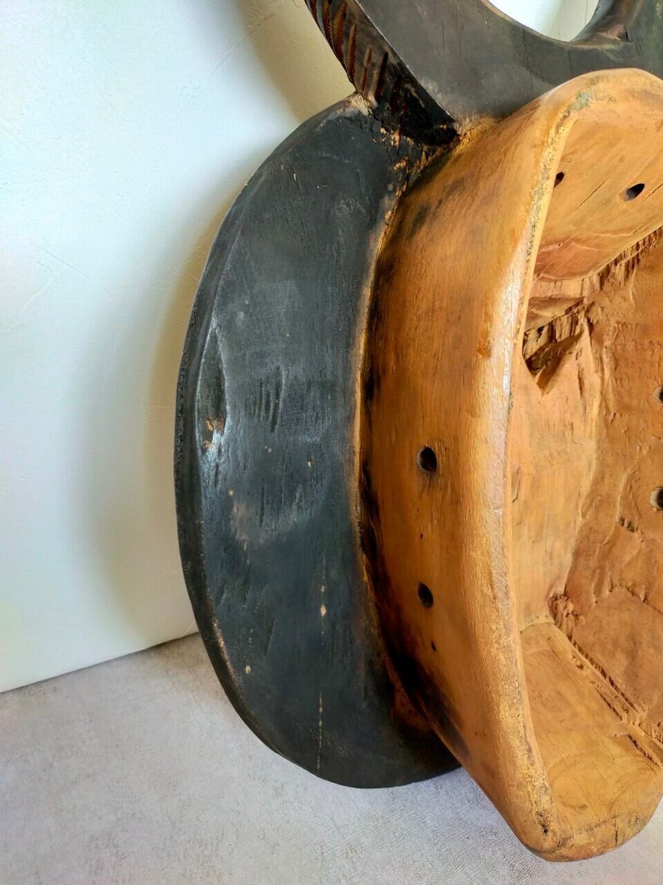 頭の角はバッファロー等の角で、顔は太陽を表していると言われています。