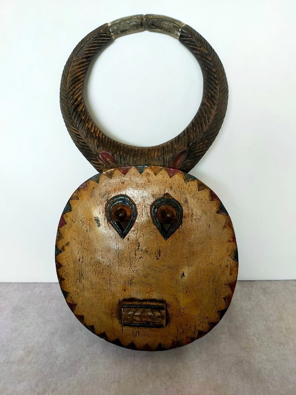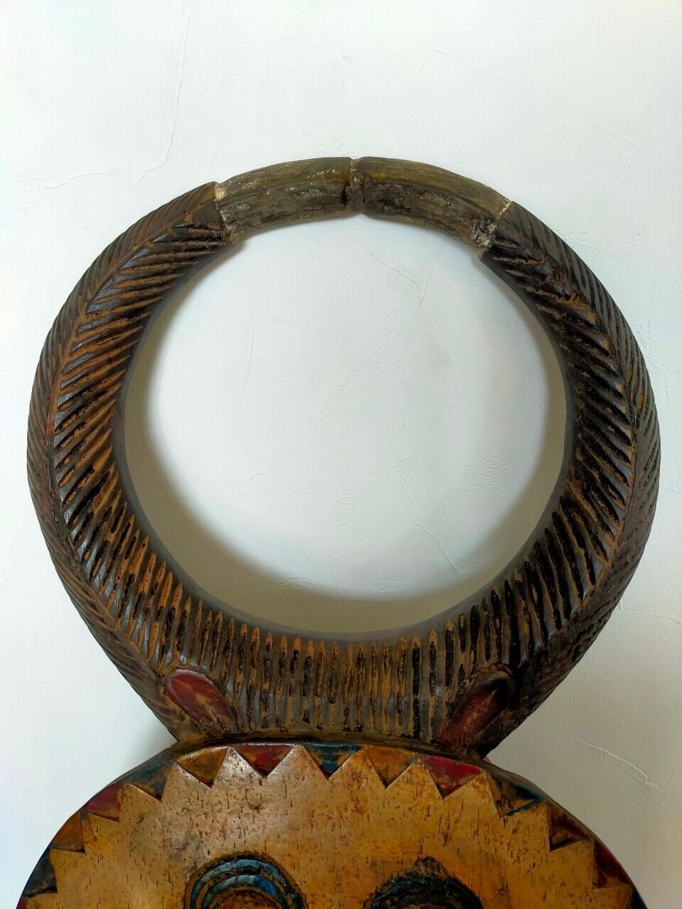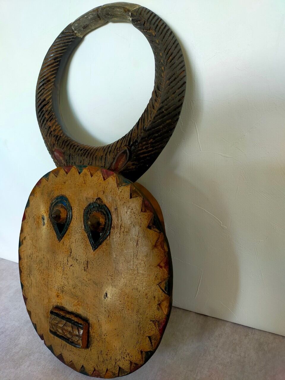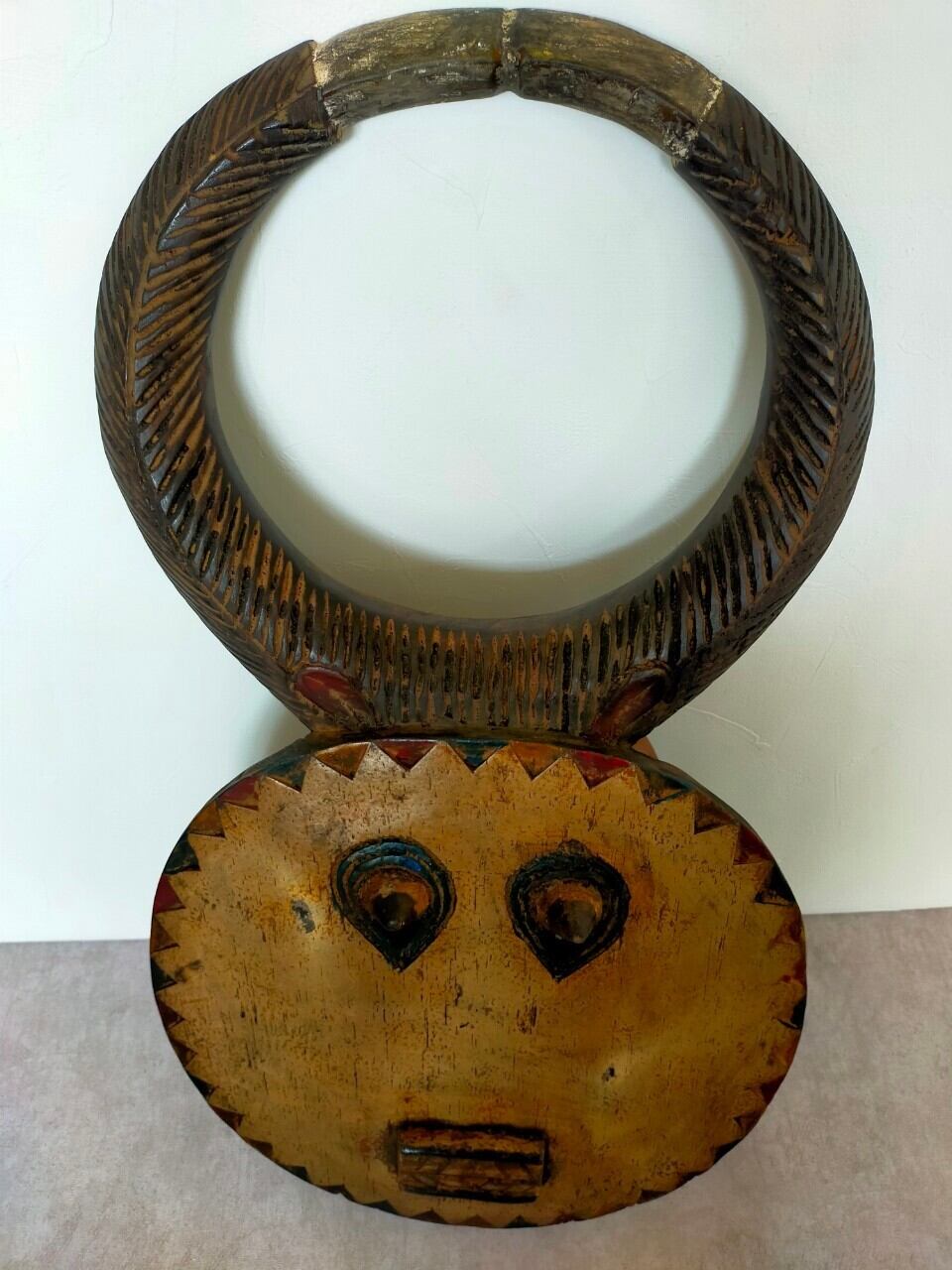 頭の角はバッファロー等の角で、顔は太陽を表していると言われています。