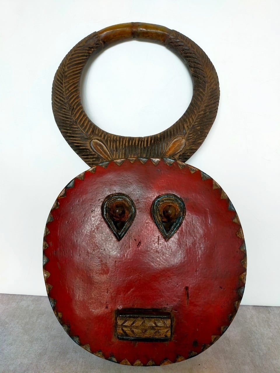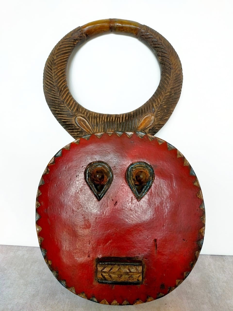 頭の角はバッファロー等の角で、顔は太陽を表していると言われています。
