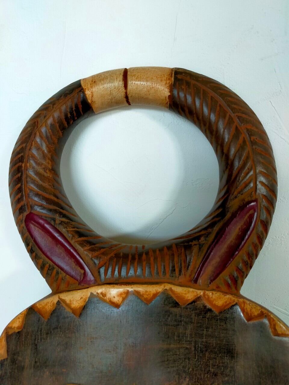 頭の角はバッファロー等の角で、顔は太陽を表していると言われています。