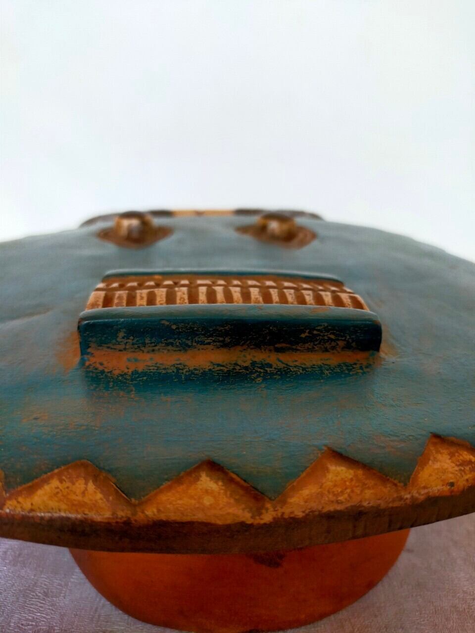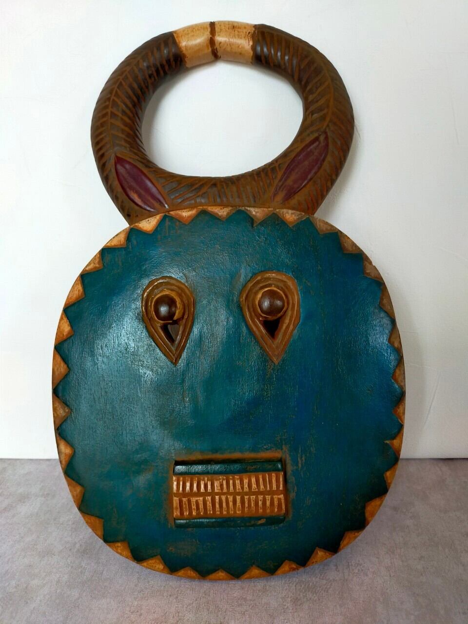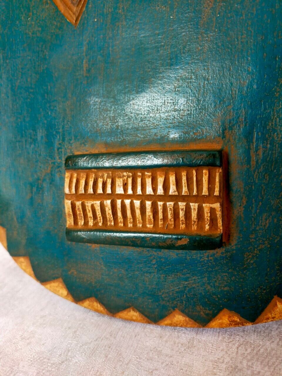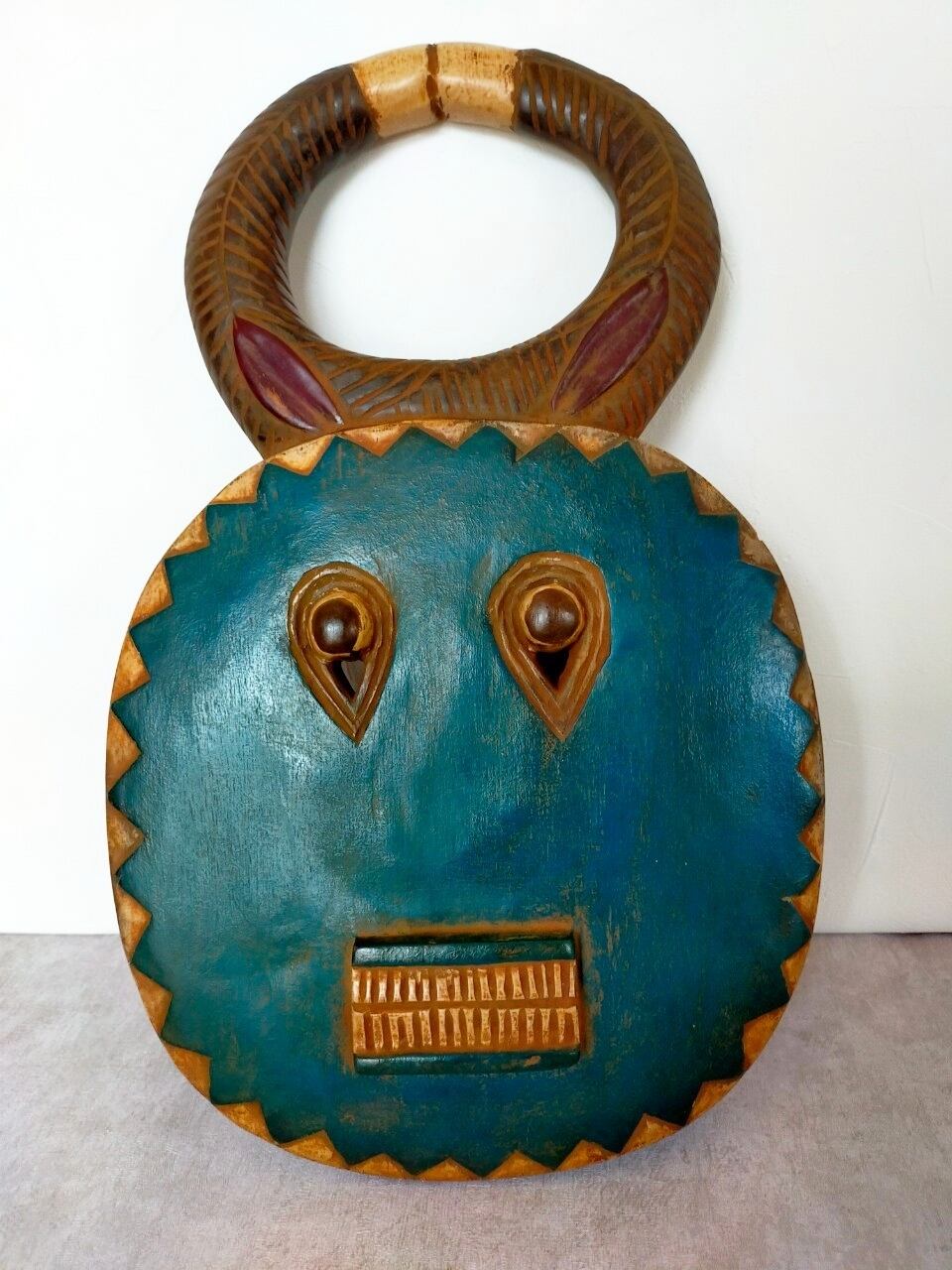 頭の角はバッファロー等の角で、顔は太陽を表していると言われています。