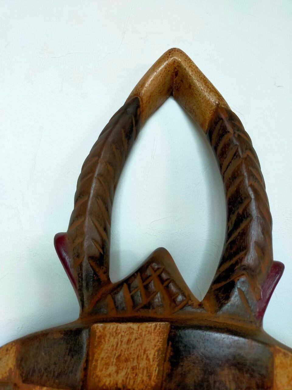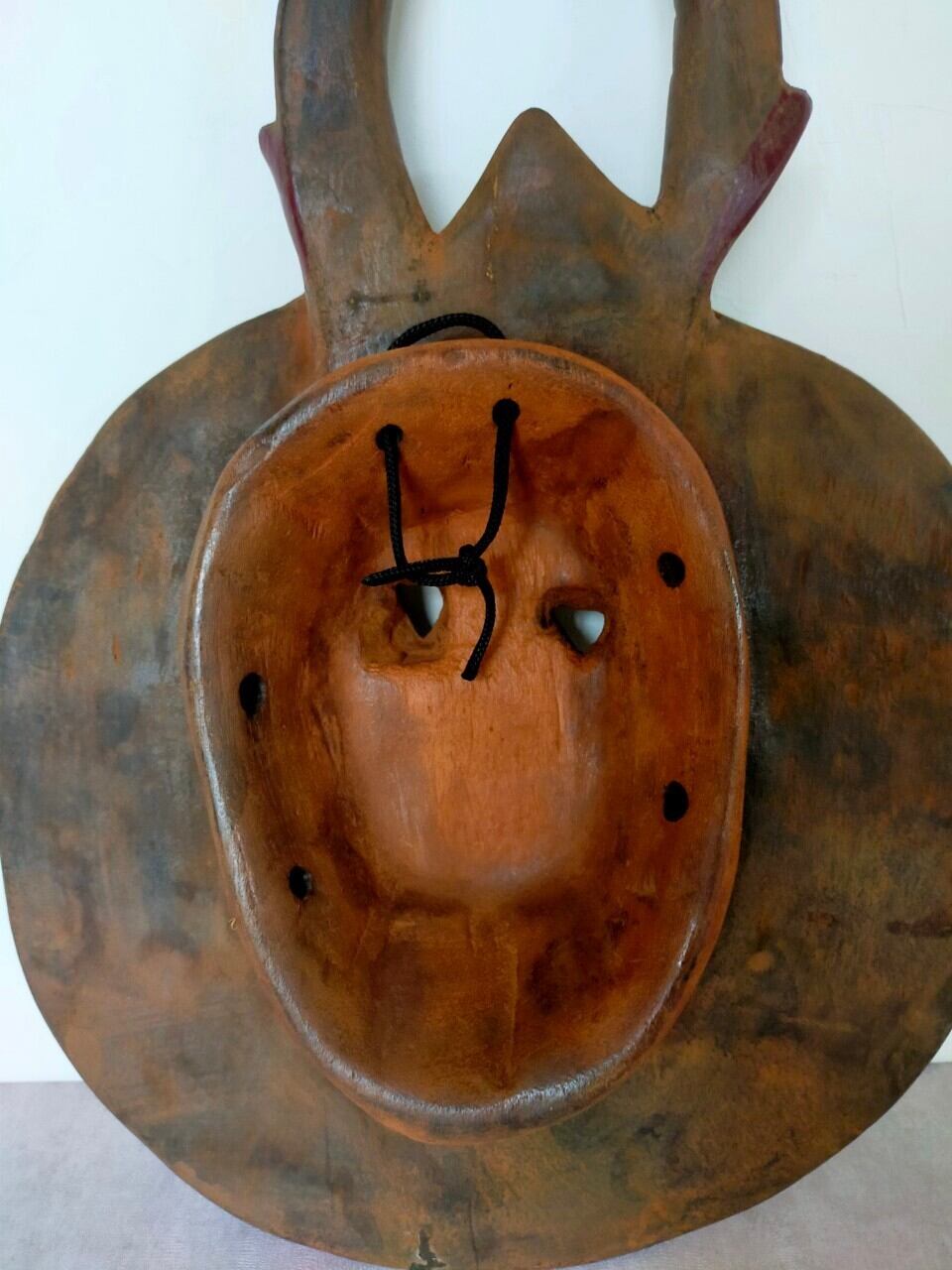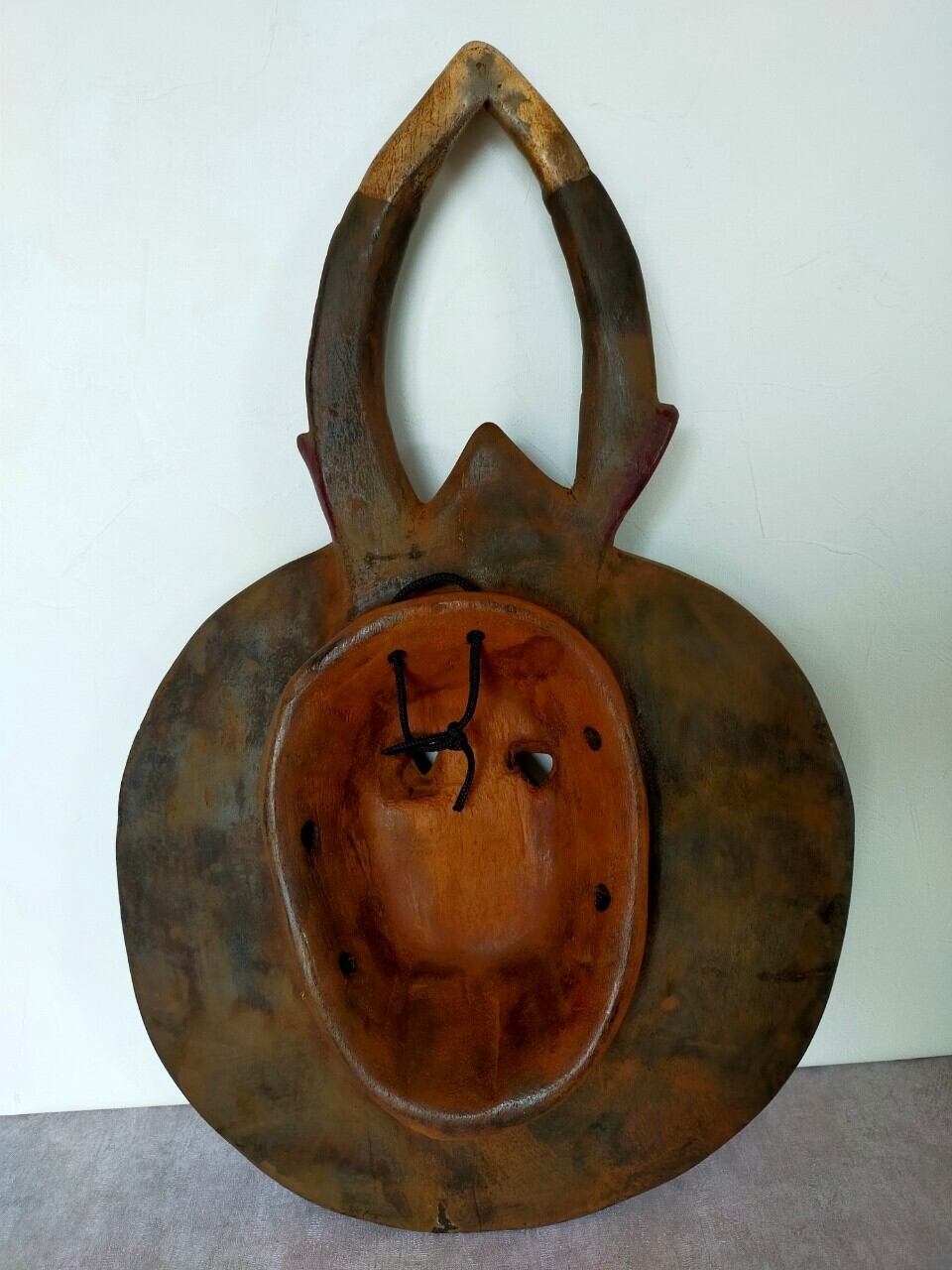 頭の角はバッファロー等の角で、顔は太陽を表していると言われています。