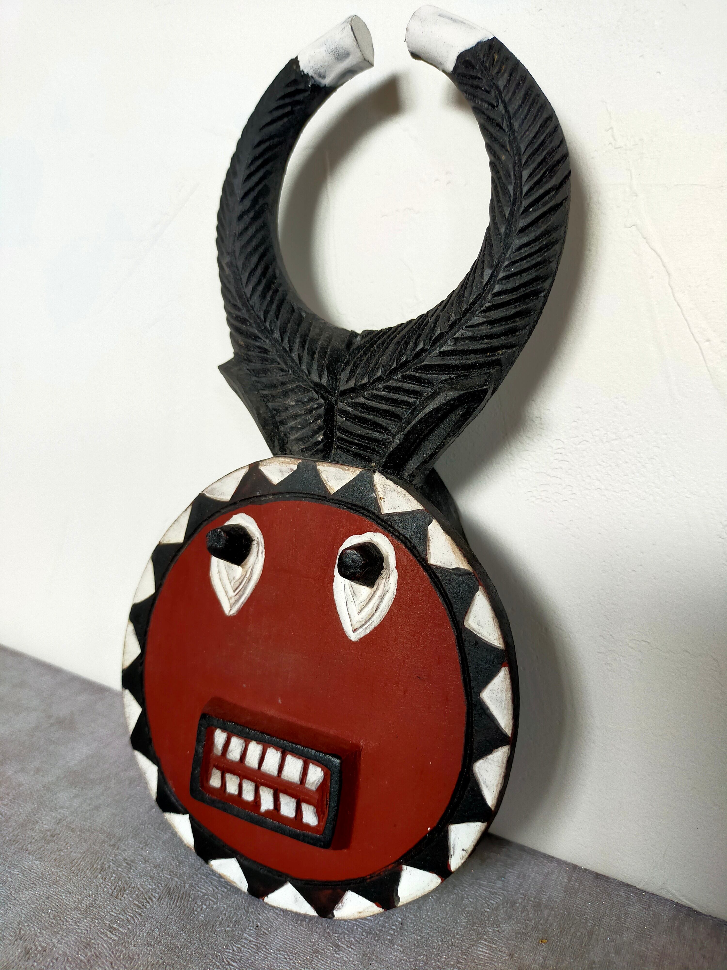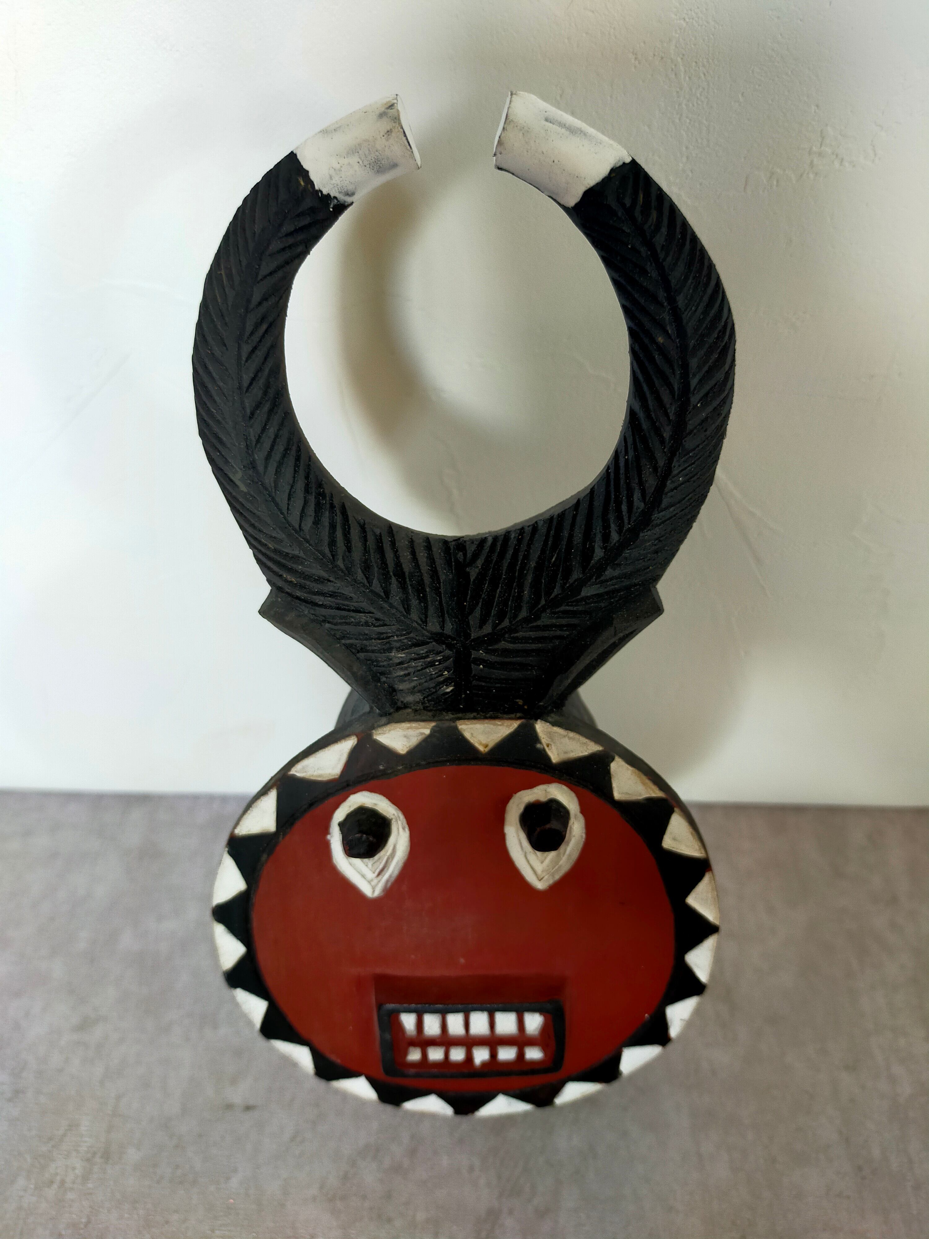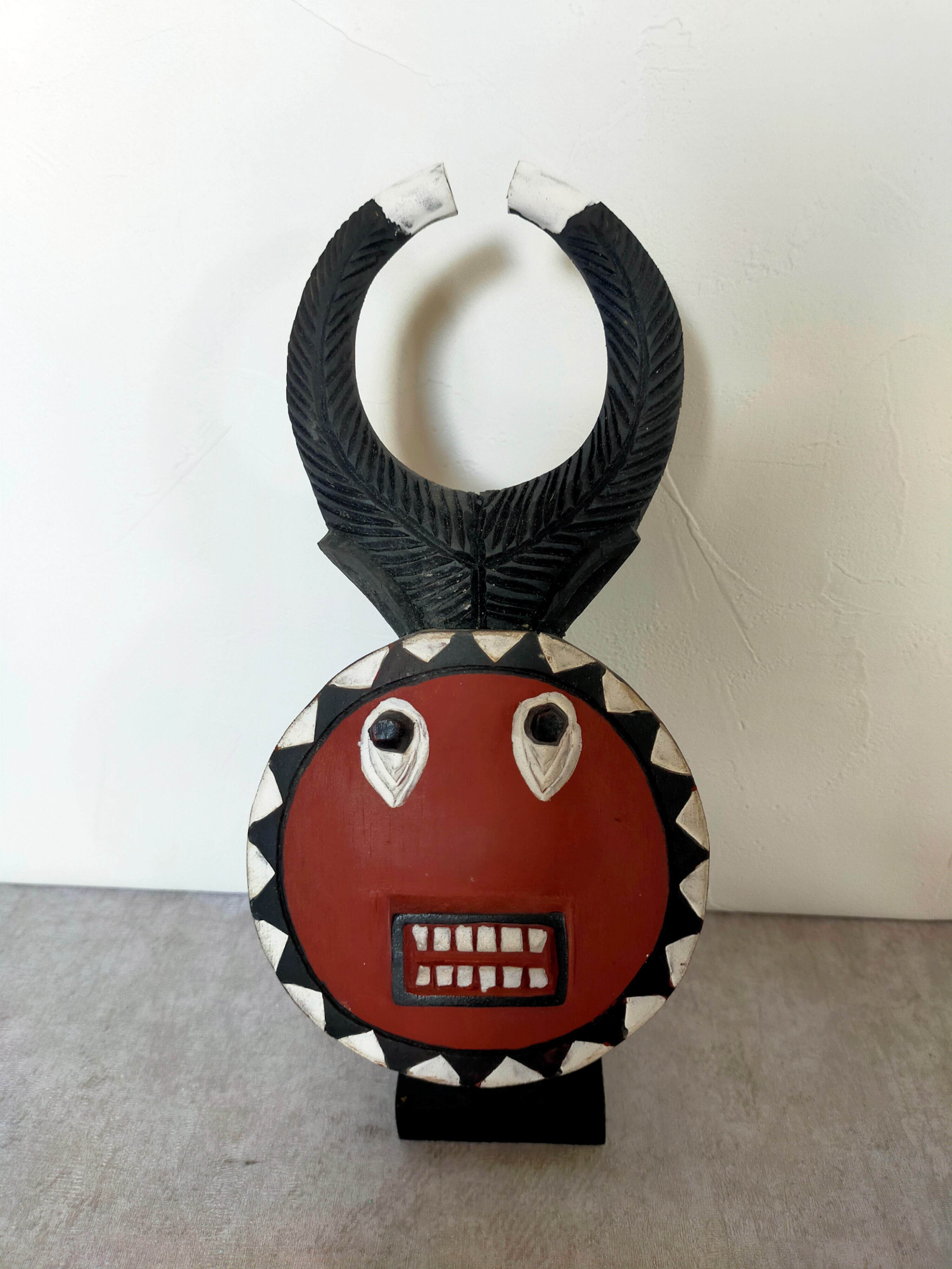 頭の角はバッファロー等の角で、顔は太陽を表していると言われています。
