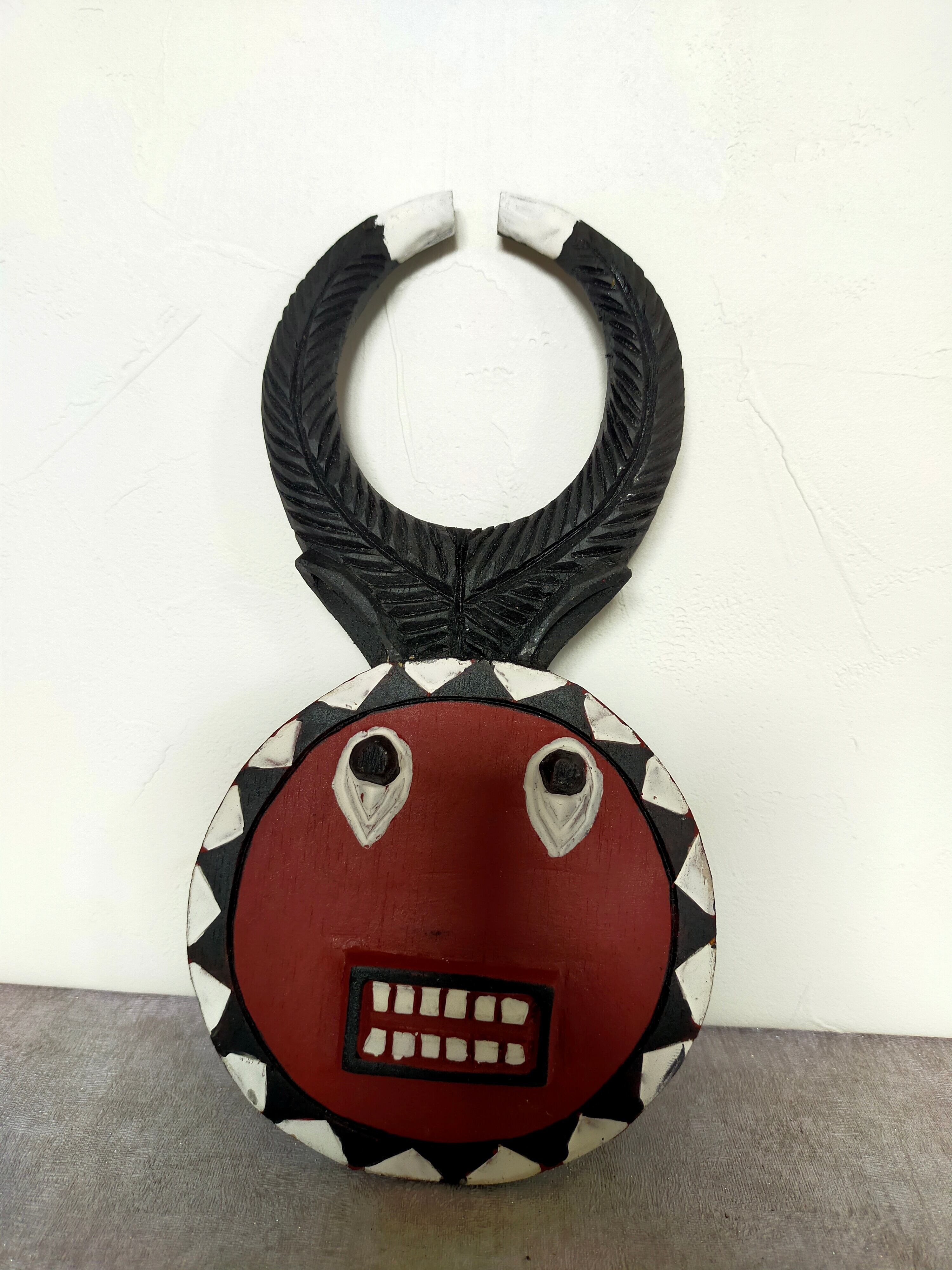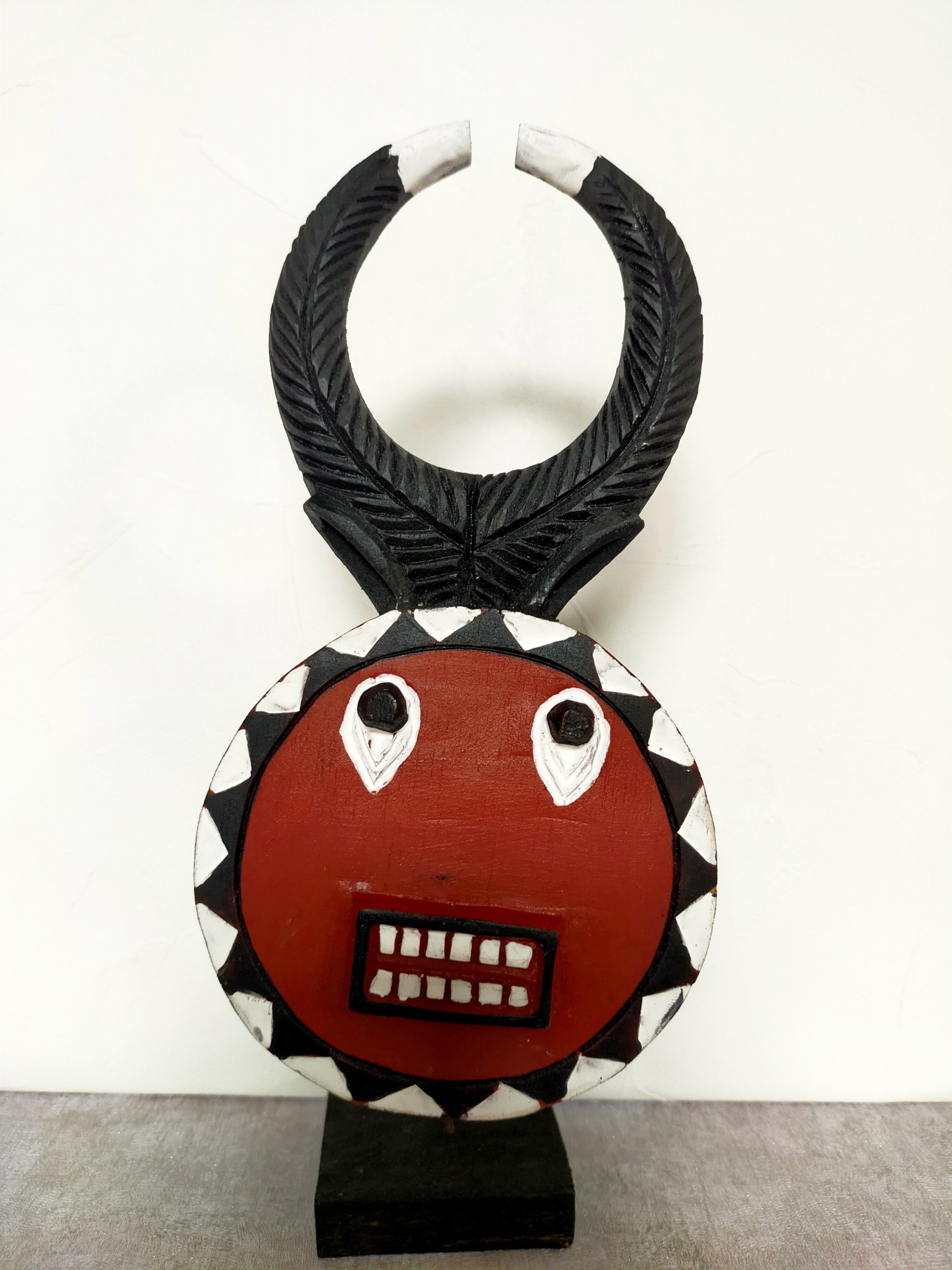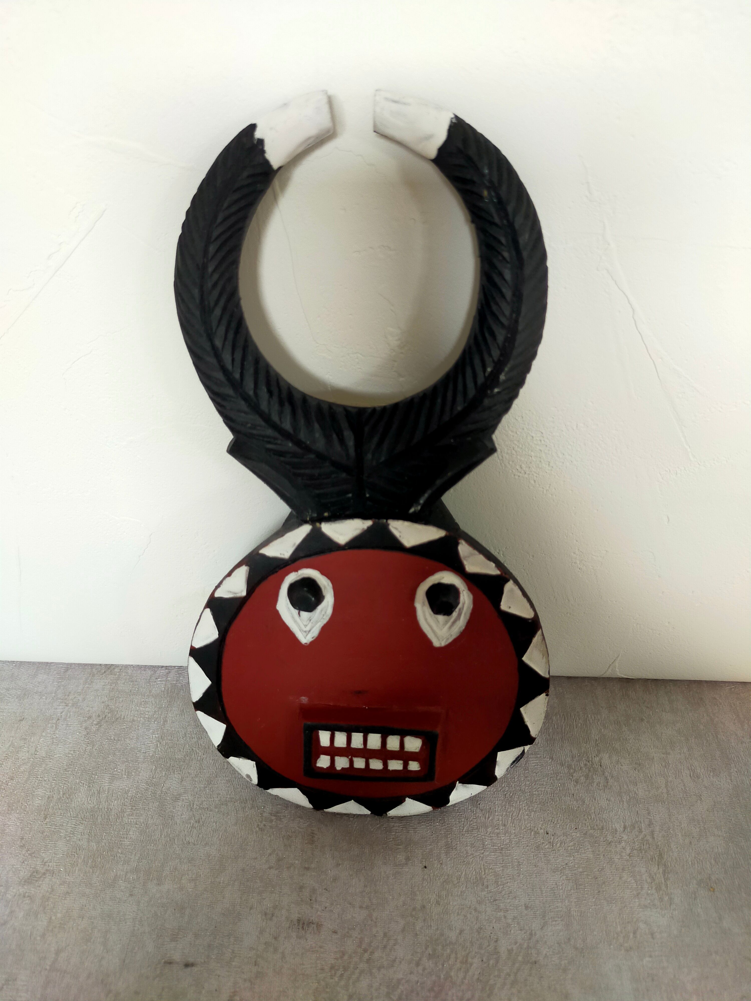 頭の角はバッファロー等の角で、顔は太陽を表していると言われています。