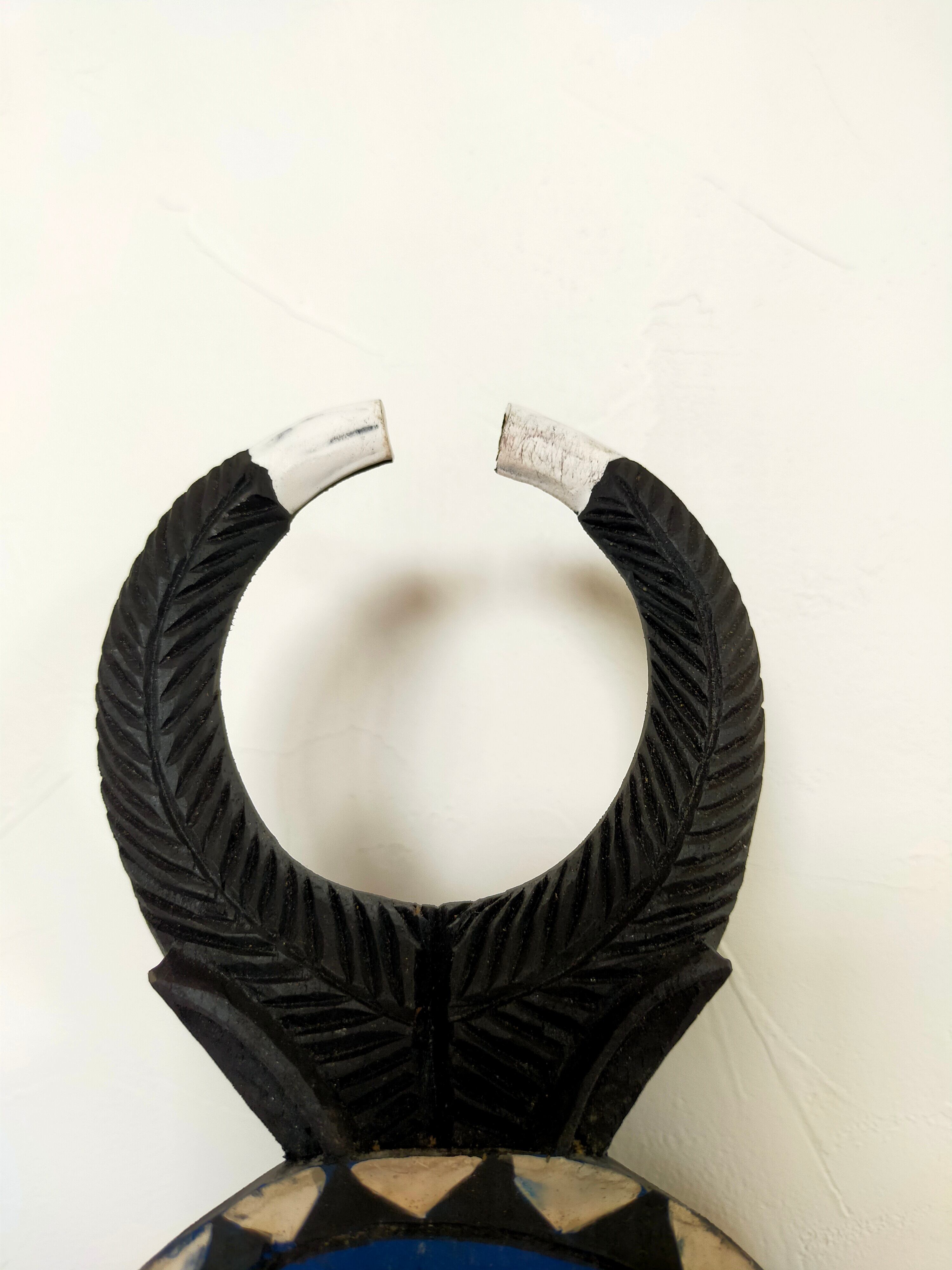 頭の角はバッファロー等の角で、顔は太陽を表していると言われています。