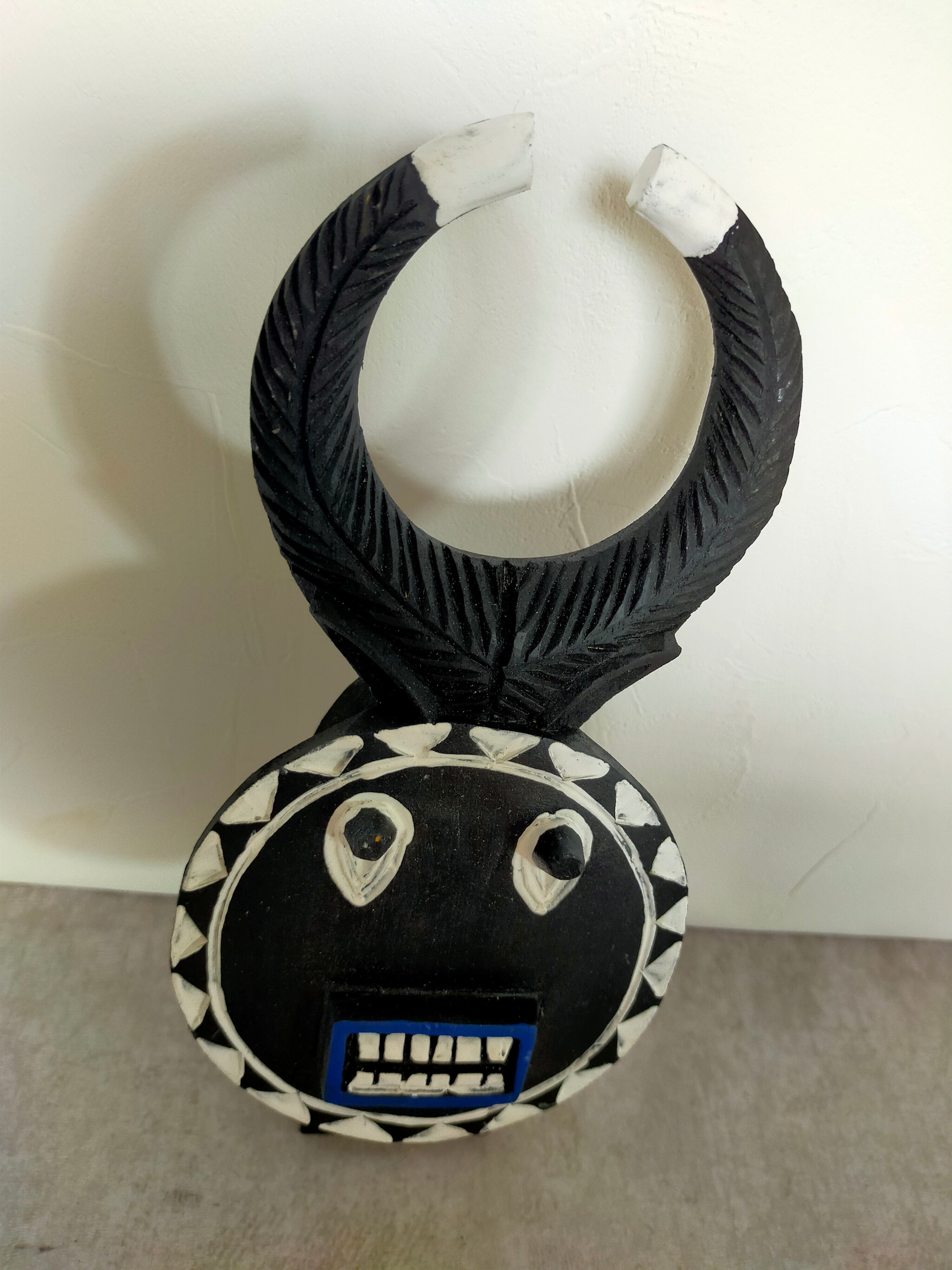 頭の角はバッファロー等の角で、顔は太陽を表していると言われています。