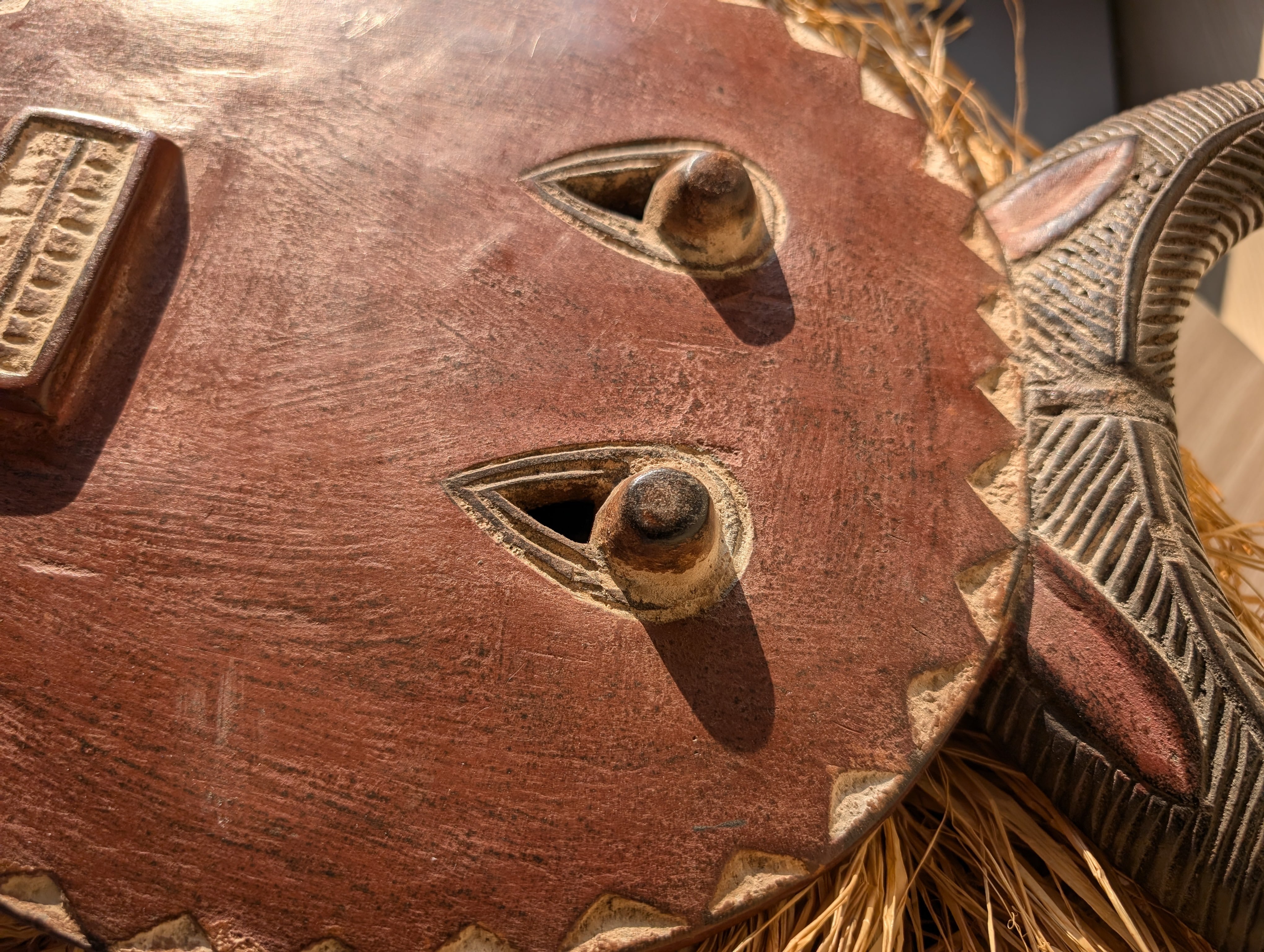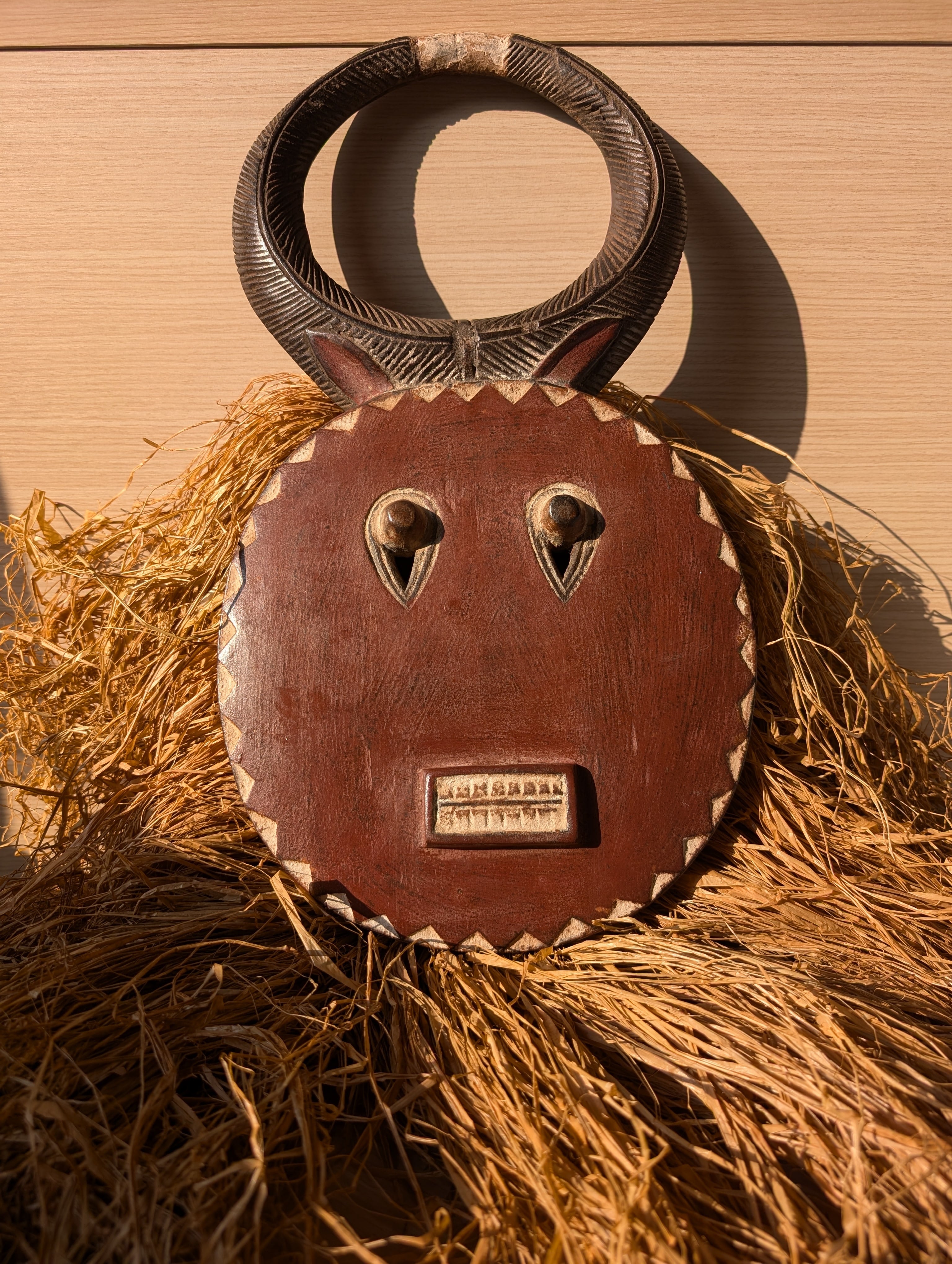 頭の角はバッファロー等の角で、顔は太陽を表していると言われています。