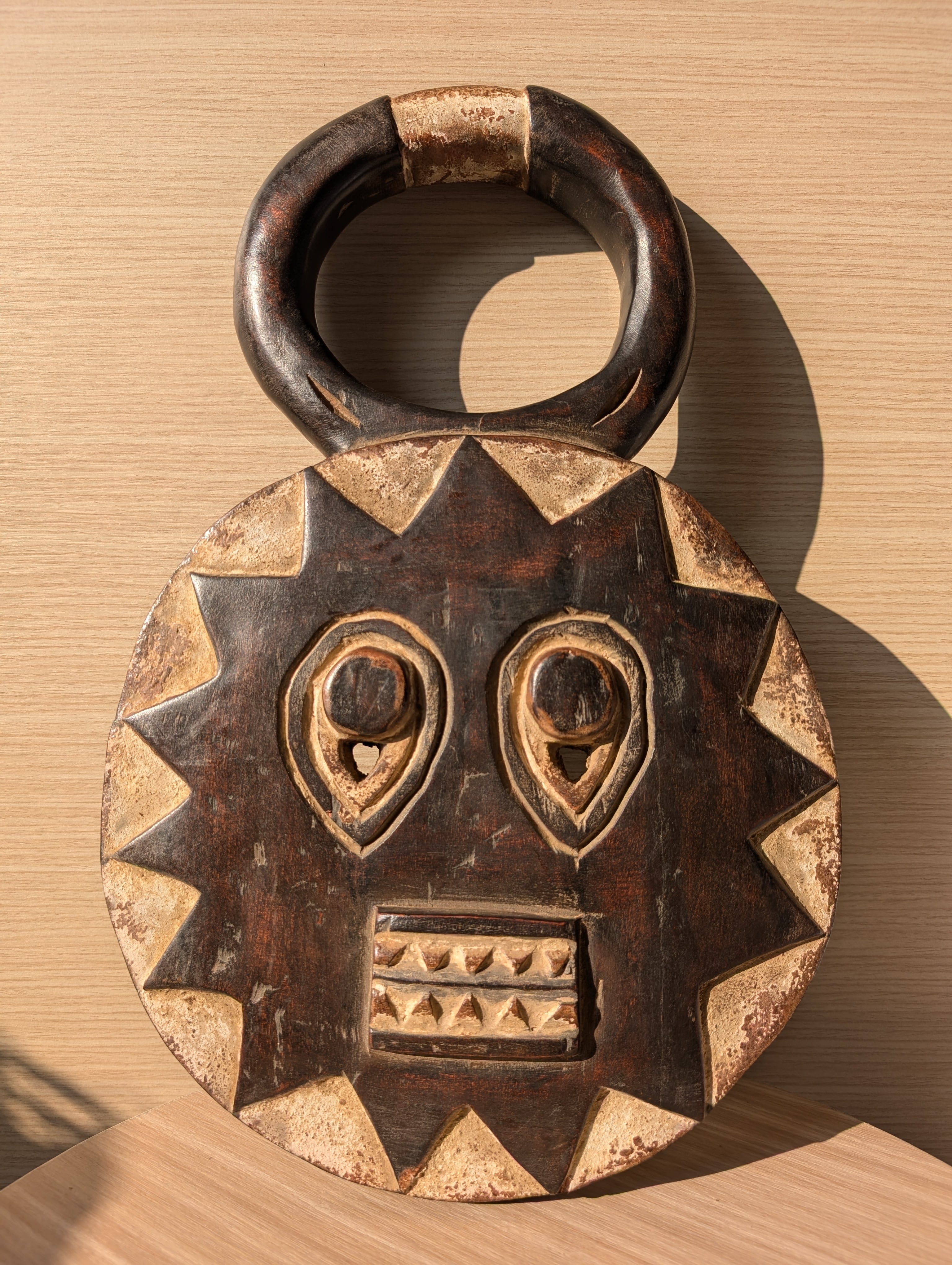 頭の角はバッファロー等の角で、顔は太陽を表していると言われています。